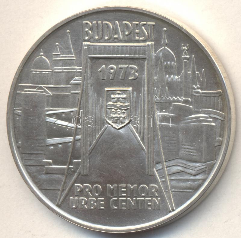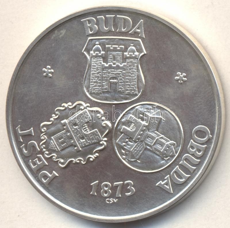 Leírás: Csúcs Viktória (1934-) 1973. "Pest-Buda-Óbuda egyesítésének centenáriuma / ÁPV emléktallér" Ag(0.800) emlékérem (25,1g/42,5mm) T:BU