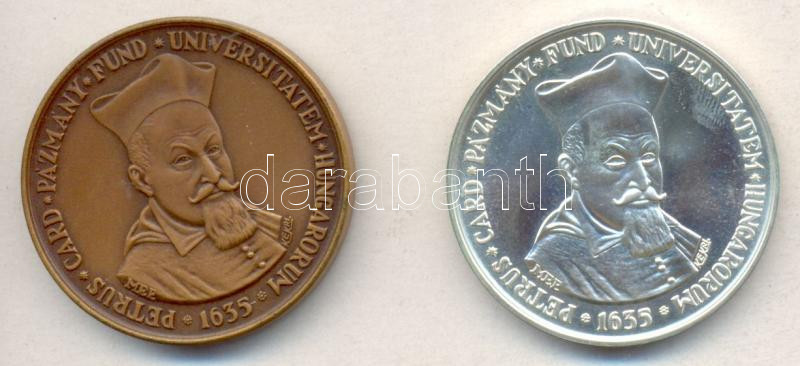 Leírás: Kelemen Kristóf (1922-) 1985. "MÉE Budapest / Pázmány Péter - Eötvös Lóránd" Ag + Br emlékérem pár (34.36g/0.640/42.5mm) T:BU,1