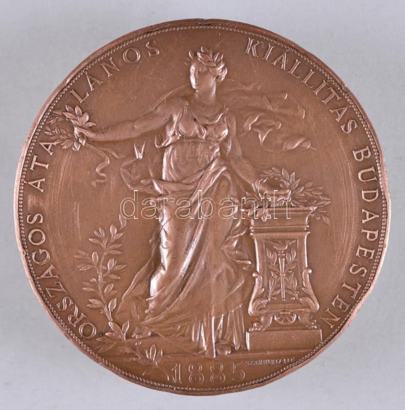 Leírás: Scwartz István (1851-1924) 1885. "Országos Átalános Kiállítás Budapesten / Az Érdem Jeléül" Br emlékérem (65mm) T:2- ph.