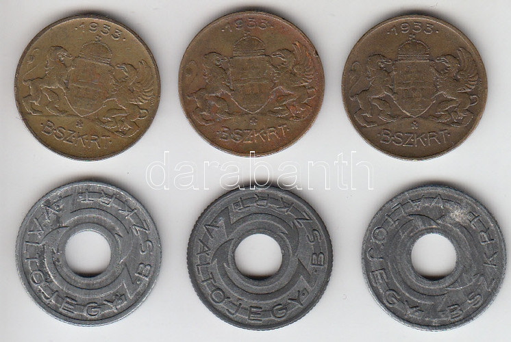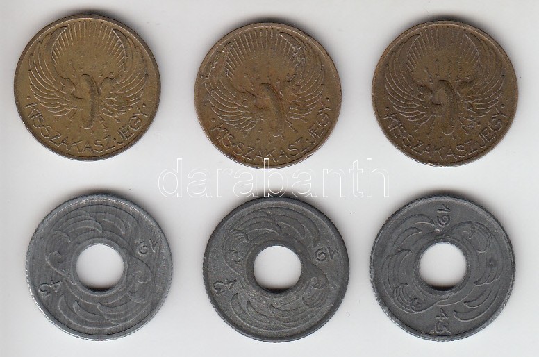1933-1943. "Kis Szakasz Jegy / B.SZ.K.R.T" (6x) T:vegyes https://www.darabanth.com/hu/182-Gyorsarveres/182.0/Numizmatika/Magyar-es-kulfoldi-papir-es-fem-szuksegpenzek~400427/1933-1943-Kis-Szakasz-Jegy-BSZKRT-6x-Tvegyes~II650181