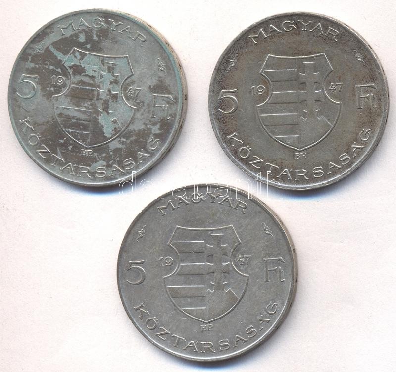 1947. 5Ft Ag "Kossuth" (3x) T:vegyes