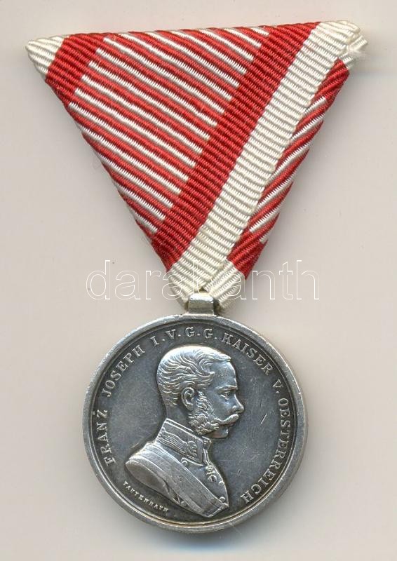 1866. "Ferenc József II. osztályú Ezüst Vitézségi Érem" Ag kitüntetés mellszalagon, fémjel nélkül Szign.: Tautenhayn T:2