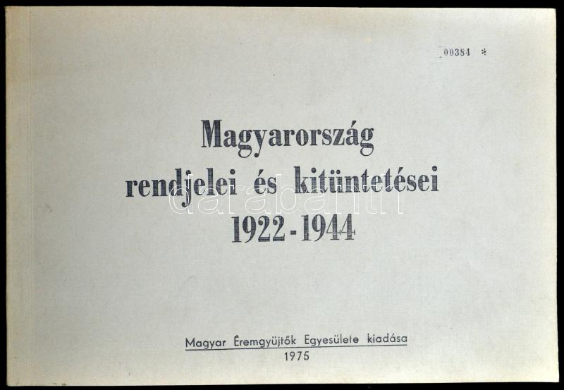 Leírás: Tálas Géza 1975. "Magyarország rendjelei és kitüntetései 1922-1944" a MÉE kiadásában, számos képmellékletekkel