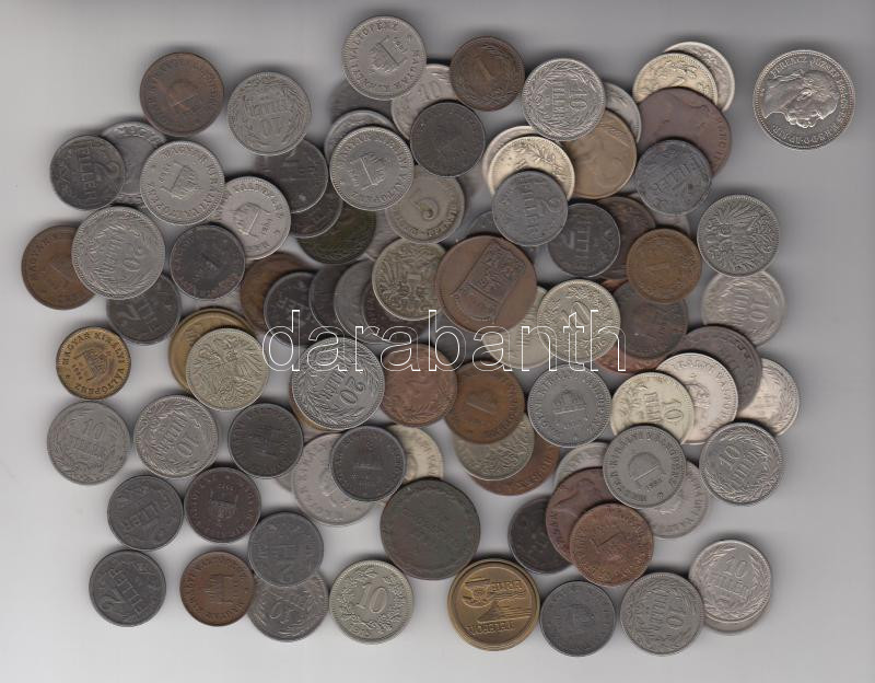 Leírás: Vegyes magyar és osztrák fillér és heller tétel, közte Ag 1K is, összesen 100db T:vegyes