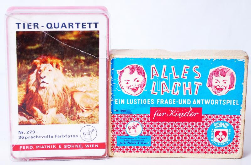 Leírás: Alles Lacht német kérdez-felelek kártyajáték és egy német Tier Quartet képes állat kártyajáték, dobozában