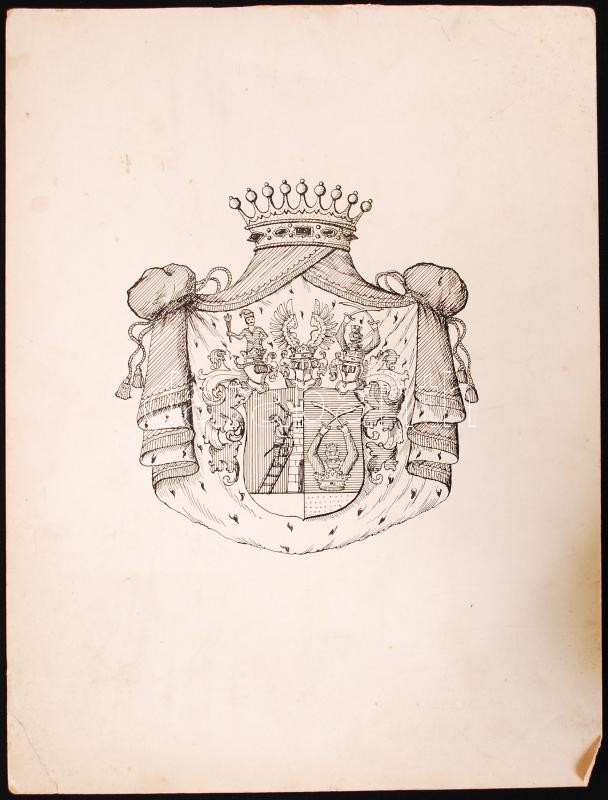Leírás: Major H jelzéssel: Hercegi címer, tus, papír, 33×25 cm