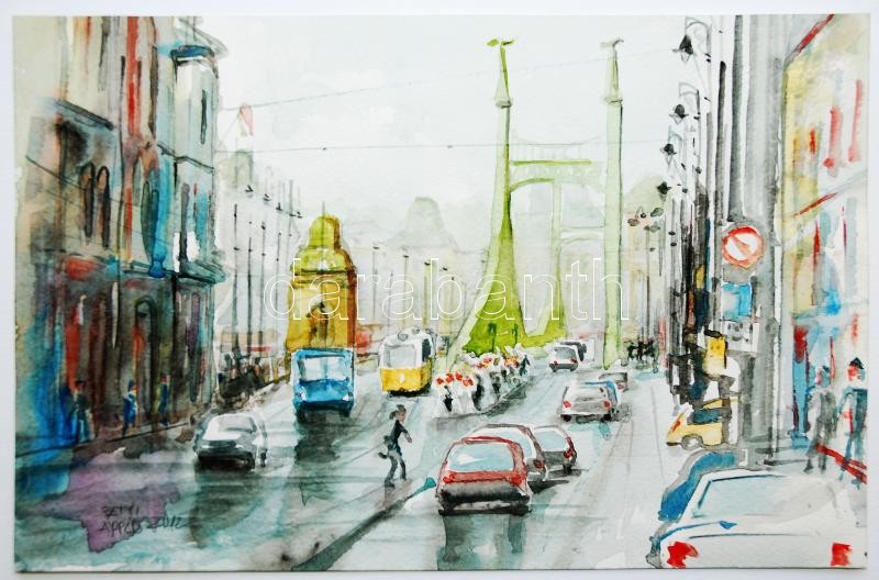 Patyi Árpád: Budapest 2 oldalas, Akvarell, merített papír, jelzett, 18... https://www.darabanth.com/hu/183-Gyorsarveres/183.0/Festmeny-mutargy-papirregiseg-egyeb/Festmenyek-es-grafikak~5200001/Patyi-Arpad-Budapest-2-oldalas-Akvarell-meritett-papir-jelzett-18x29-cm-3Cbr3E~II656931