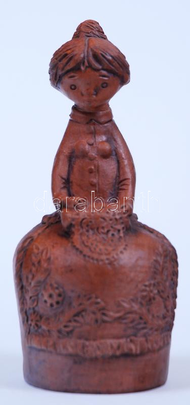 Leírás: K jelzéssel: Barna mázas kerámia leány figura, hibátlan, m:19 cm