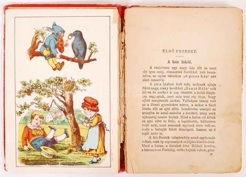 Hoffmann: A piros ház. c mesekönyv szétvált állapotban Bp., é.n., Athenaeum. (5 színes kőnyomat a kötéstáblára ragasztottal együtt.). a kűnyomatos táblák épek
