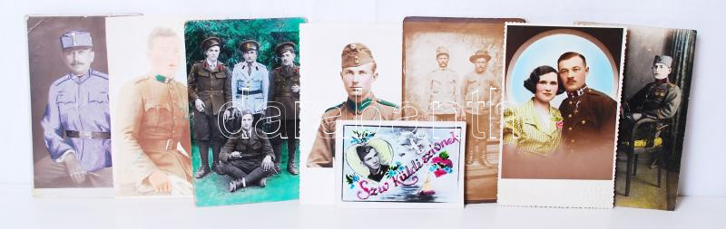 Leírás: 1910-1950 8db kézzel színezett katonai fotólap (az egyik 6x9cm)