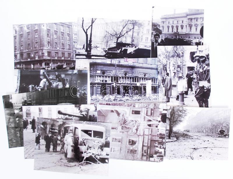 Leírás: 1956 12db felvétel a forradalmi eseményekről, eredeti negatívokról készült modern nagyítások, 13x18cm