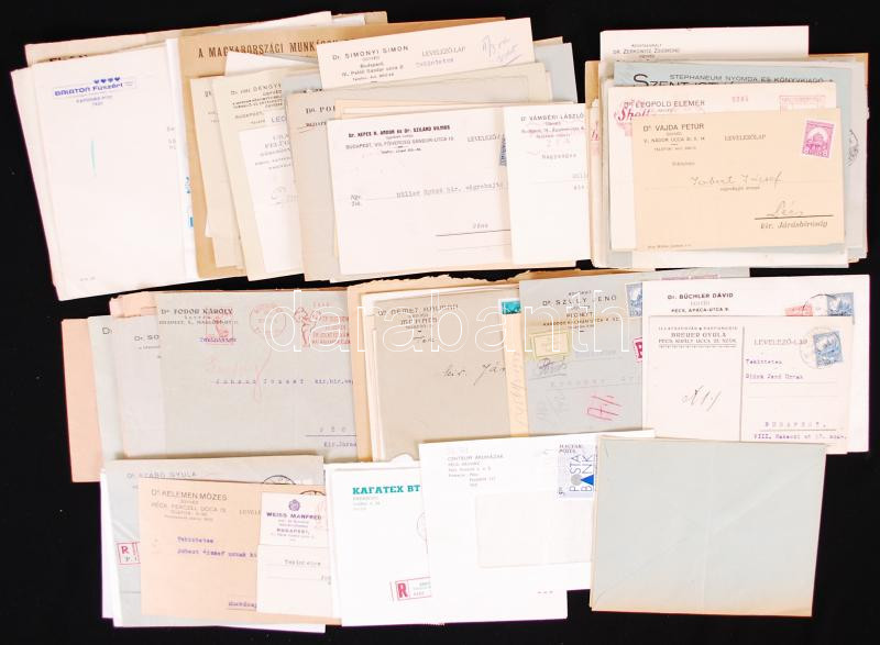 Leírás: 107 db nagyrészt háború előtti különböző állami intézmények által nyomtatott és reklámos céges boríték.