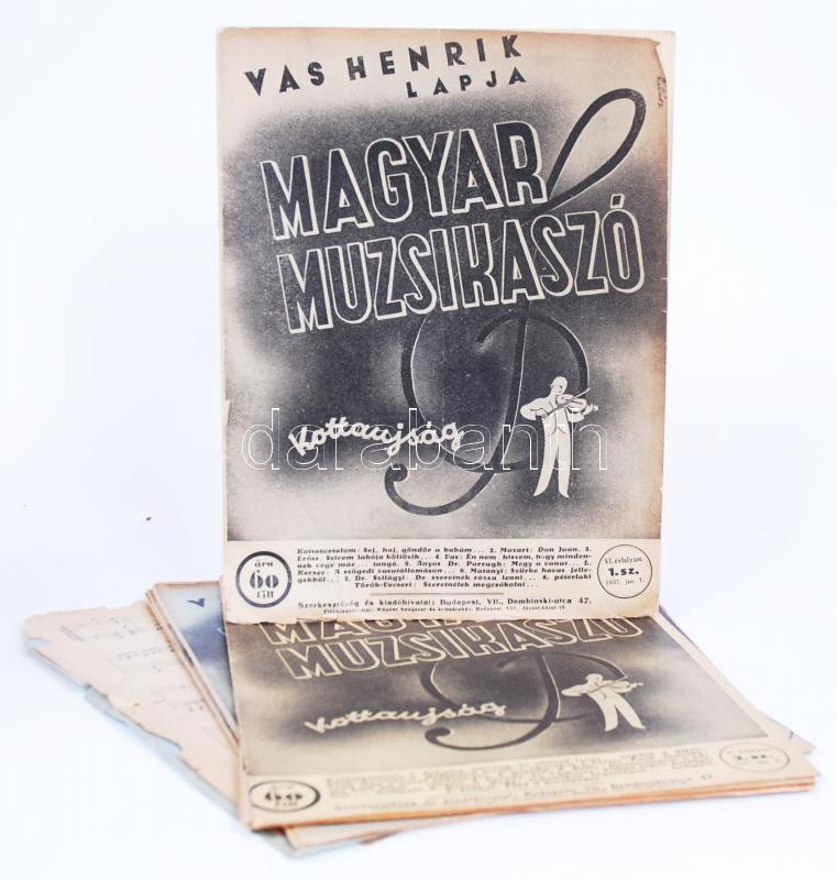 1937 Magyar Muzsikaszó. Egy híján komplett év. Néhány szám szakadt https://www.darabanth.com/hu/183-Gyorsarveres/183.0/Festmeny-mutargy-papirregiseg-egyeb/Nyomtatvanyok~5200026/1937-Magyar-Muzsikaszo-Egy-hijan-komplett-ev-Nehany-szam-szakadt~II658570