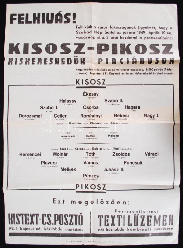 1949 KISOSZ plakát 43x60 cm https://www.darabanth.com/hu/183-Gyorsarveres/183.0/Festmeny-mutargy-papirregiseg-egyeb/Nyomtatvanyok~5200026/1949-KISOSZ-plakat-43x60-cm~II656426