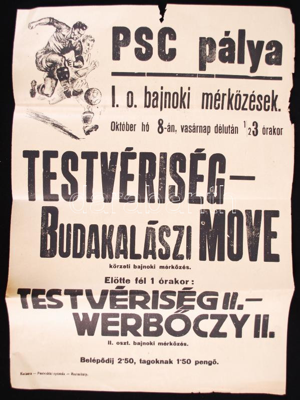 Leírás: cca 1943 Labdarúgó mérkőzés plakát 30x40 cm