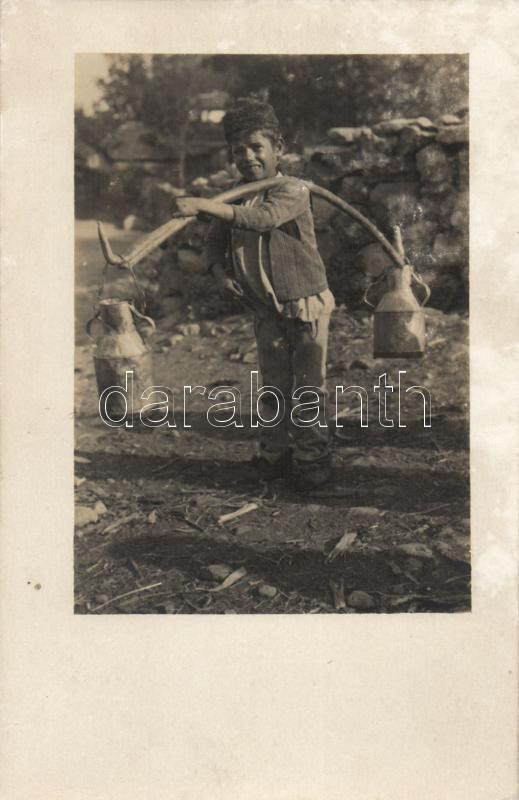 Bulgarian folklore, water carrier boy, photo https://www.darabanth.com/hu/183-Gyorsarveres/183.0/Kepeslapok/Folklor~5200053/Bulgarian-folklore-water-carrier-boy-photo~II619514