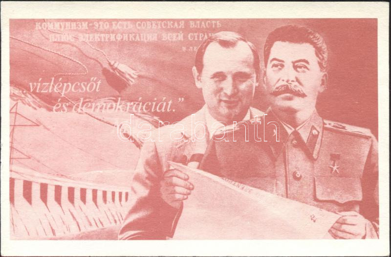 'Vízlépcsőt és demokráciát' Maróthy László, Sztálin / water management... https://www.darabanth.com/hu/183-Gyorsarveres/183.0/Kepeslapok/Propaganda~5200099/Vizlepcsot-es-demokraciat-Marothy-Laszlo-Sztalin-water-management-democratic-propaga~II655804