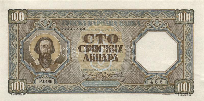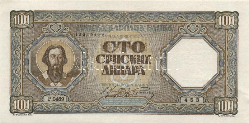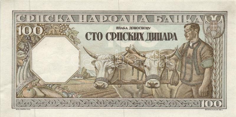 Serbi... https://www.darabanth.com/hu/183-Gyorsarveres/183.0/Numizmatika/Kulfoldi-bankjegyek~5200131/Szerbia-nemet-megszallas-1943-100D-2x-sorszamkoveto-TI-II-3Cbr3ESerbia-German-occupati~II658660