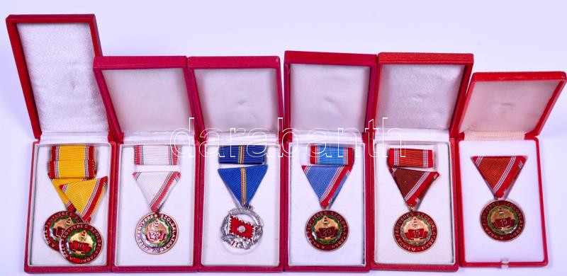 1964/1965. Szolgálati Érdemérem 10 (2x), 15 (2x), 20, 25 év után kitüntetések dísztokban + "A Haza Szolgálatáért" ezüst fokozat dísztokban T:1 összesen 7db