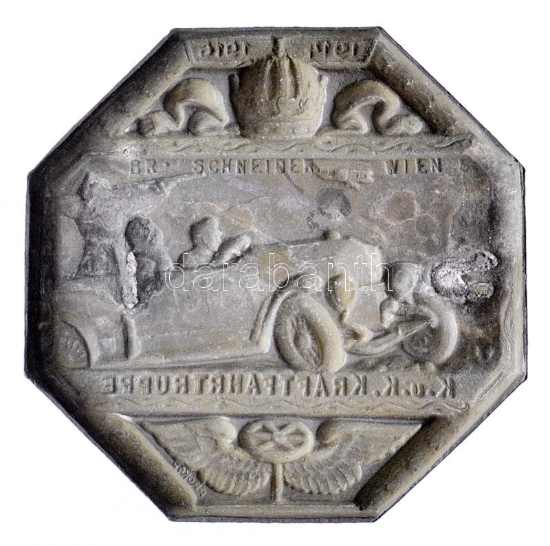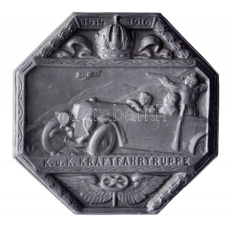 Leírás: Osztrák-Magyar Monarchia 1914-1916. Császári és Királyi Gépkocsizó alakulat cink sapkajelvény (38x38m) szignó: PROKOP, készítő: "Br. Schneider Wien" , tű nélkül T:1-