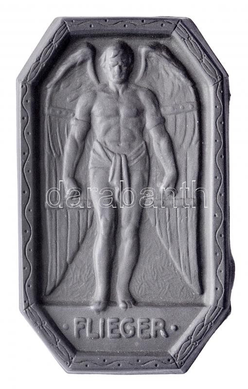 Leírás: Osztrák-Magyar Monarchia ~1914-1918. "FLIEGER" cink pilóta sapkajelvény (48x29m) készítő: BWS, tű nélkül T:1-
