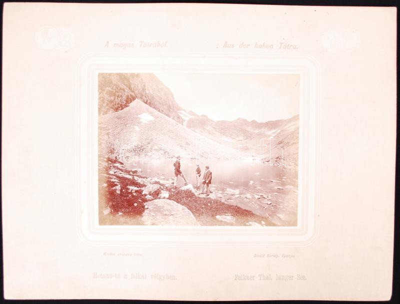 cca 1880 A magas Tátrából - Aus der hohen Tátra: Hosszú-tó a felkai völgyben - Felkaer Thal, langer See. Divald Károly eperjesi műterméből, kartonra kasírozva, 32x24cm