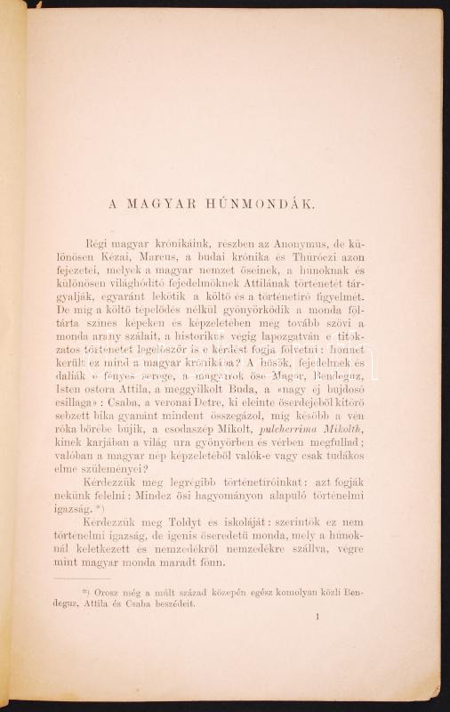 Leírás: Riedl Frigyes: A magyar húnmondák. 20p.