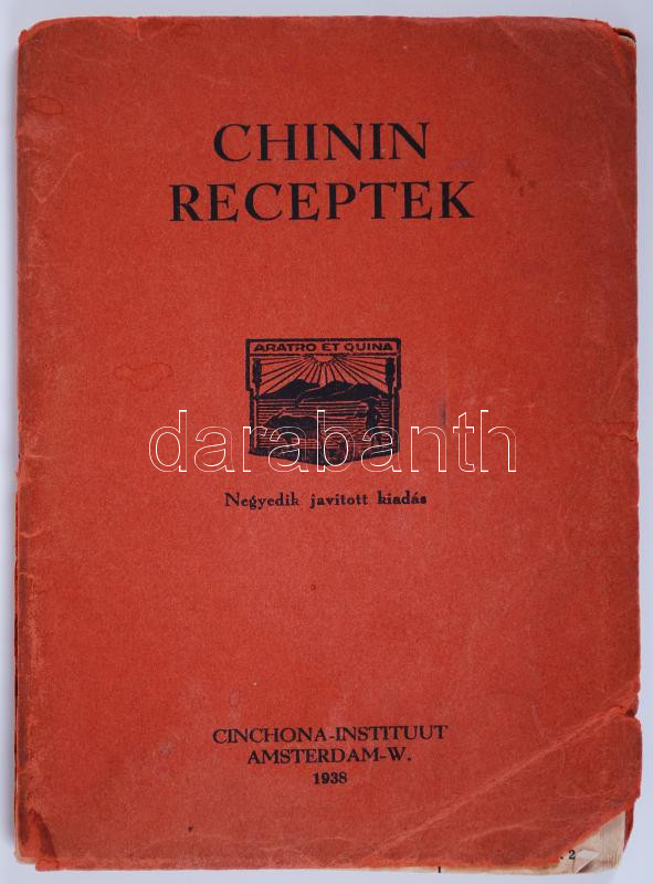 Chinin receptek. Negyedik javitott kiadás. Amsterdam-W., 1938, Cinchon... https://www.darabanth.com/hu/184-Gyorsarveres/184.0/Festmeny-mutargy-papirregiseg-egyeb/Konyvek-Tudomany-es-technika~3000027/Chinin-receptek-Negyedik-javitott-kiadas-Amsterdam-W-1938-Cinchona-Istituut-Fuzott-47p~II670070