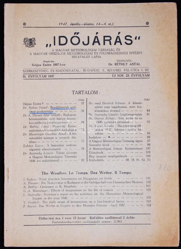 1947 Időjárás c. lap 4-6 száma https://www.darabanth.com/hu/184-Gyorsarveres/184.0/Festmeny-mutargy-papirregiseg-egyeb/Nyomtatvanyok~3000026/1947-Idojaras-c-lap-4-6-szama~II670582