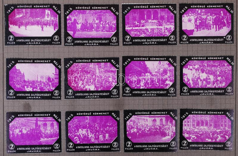 1915 Könyörgő körmenet 12 darabos segélybélyeg sorozat lila-fekete szí... https://www.darabanth.com/hu/184-Gyorsarveres/184.0/Festmeny-mutargy-papirregiseg-egyeb/Parafilatelia~3000012/1915-Konyorgo-kormenet-12-darabos-segelybelyeg-sorozat-lila-fekete-szinben-A4-lapon~II667199