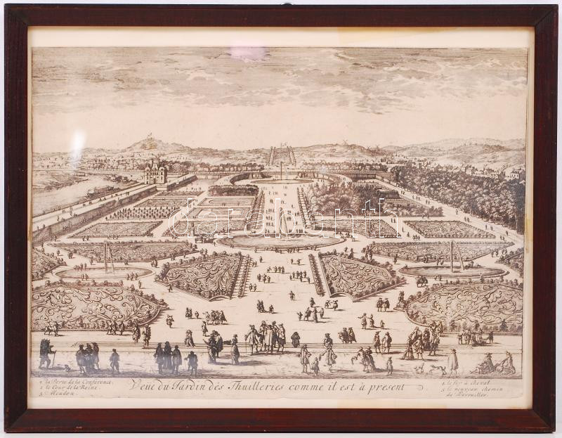 cca 1750 "Veüe du Jardin des Thuilleries comme il est a present". A Tuileriák látképe, rézmetszet, papír, üvegezett keretben /