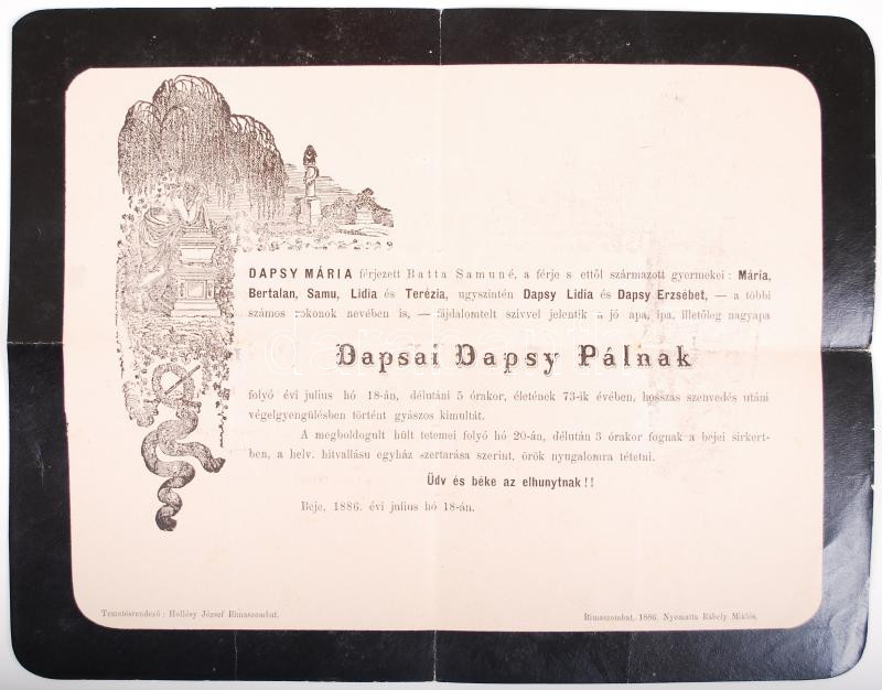1886 Dapsai Dapsy Pál gyászjelentése https://www.darabanth.com/hu/185-Gyorsarveres/185.0/Festmeny-mutargy-papirregiseg-egyeb/Nyomtatvanyok~3000018/1886-Dapsai-Dapsy-Pal-gyaszjelentese~II678860
