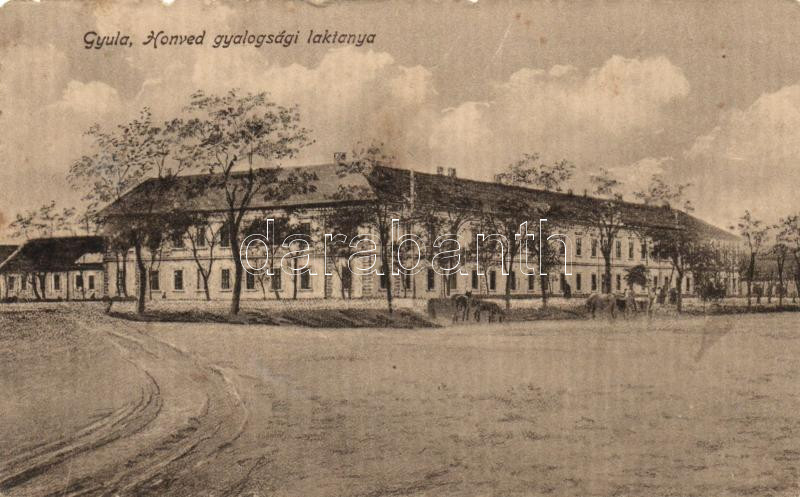 Gyula honvéd gyalogsági laktanya (fl) https://www.darabanth.com/hu/185-Gyorsarveres/185.0/Kepeslapok/Magyarorszag~400005/Gyula-honved-gyalogsagi-laktanya-fl~II672489