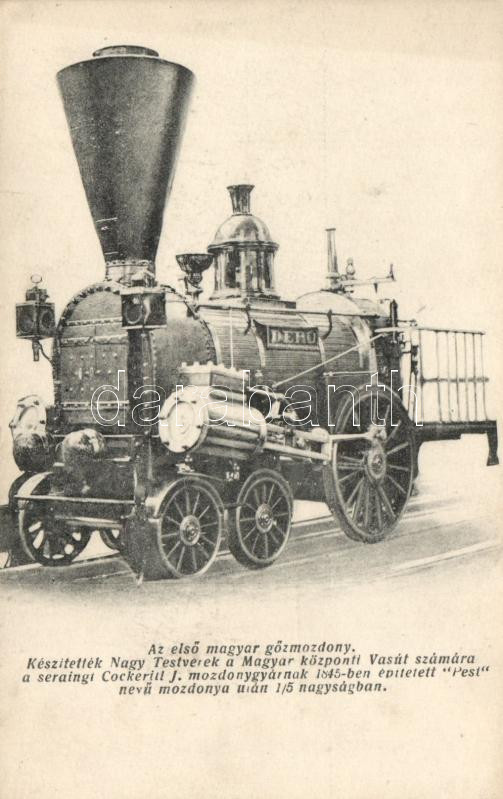 Az első magyar gőzmozdony / the first Hungarian locomotive https://www.darabanth.com/hu/185-Gyorsarveres/185.0/Kepeslapok/Vonat~3000132/Az-elso-magyar-gozmozdony-the-first-Hungarian-locomotive~II672391