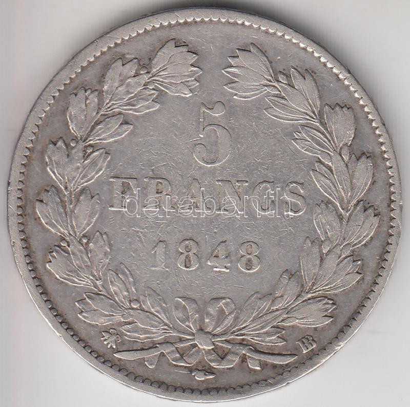 France 18... https://www.darabanth.com/hu/185-Gyorsarveres/185.0/Numizmatika/Kulfoldi-fem-es-ezustpenzek~200012/Franciaorszag-1848BB-5Fr-Ag-I-Lajos-Fulop-Strasbourg-T2--3Cbr3EFrance-1848BB-5-Francs-Ag-Loui~II676786