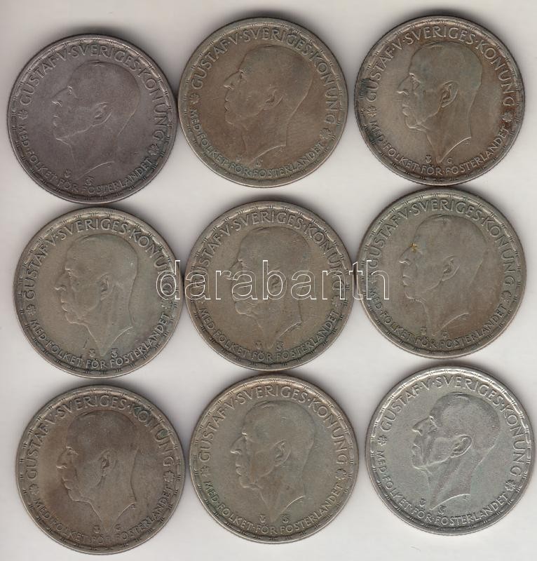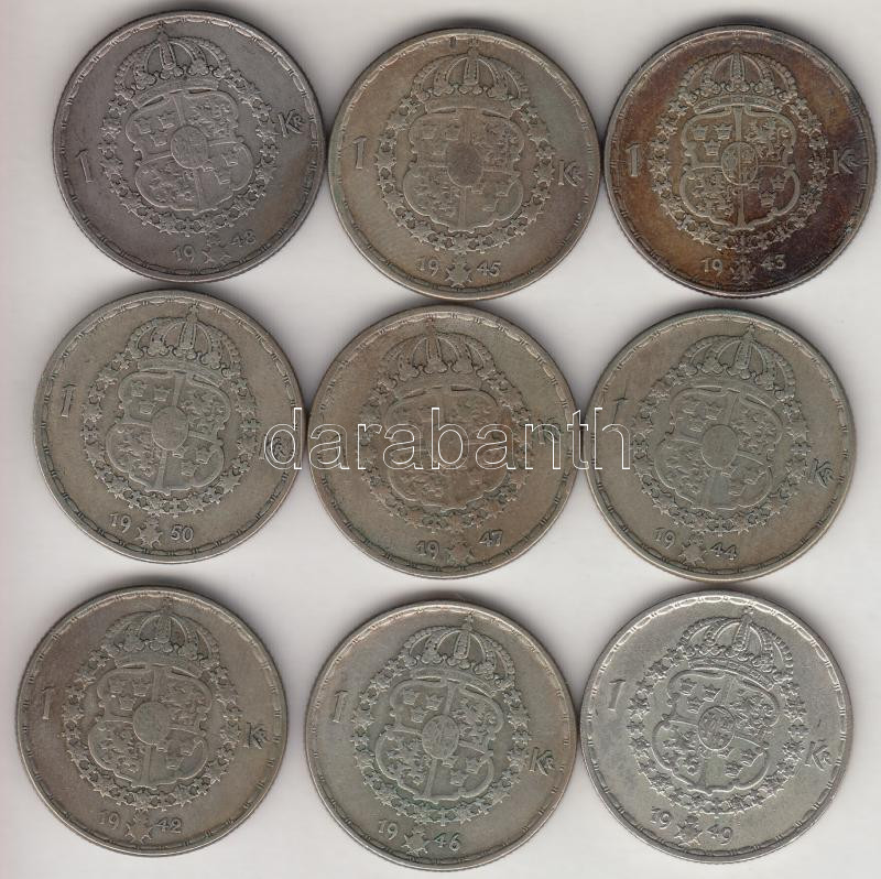 Leírás: Svédország 1942-1950. 1K Ag "V. Gusztáv" (9xklf) T:vegyes