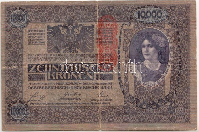 Leírás: 1918. 10.000K mindkét oldal azonos "Deutschösterreich" felülbélyegzéssel T:III-