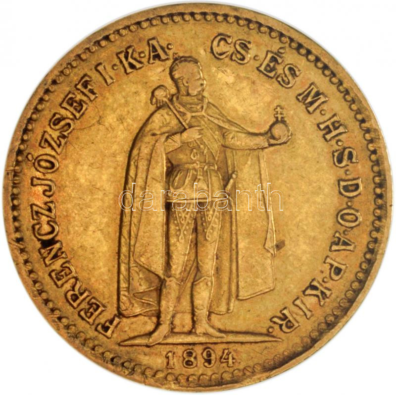 Hungary 18... https://www.darabanth.com/hu/185-Gyorsarveres/185.0/Numizmatika/Magyar-es-kulfoldi-arany-penzek~200010/1894KB-10K-Au-Ferenc-Jozsef-337g0900-T2--3Cbr3EHungary-1894-10-Kronen-Au-Franz-Joseph-I-~II622108