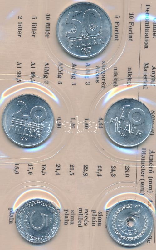 1977. 2f-10Ft 9klf "Magyar Népköztársaság" forgalmi érméi méregzöld mű... https://www.darabanth.com/hu/185-Gyorsarveres/185.0/Numizmatika/Magyar-fem-es-ezustpenzek~200008/1977-2f-10Ft-9klf-Magyar-Nepkoztarsasag-forgalmi-ermei-meregzold-mubortokban-T1~II678084