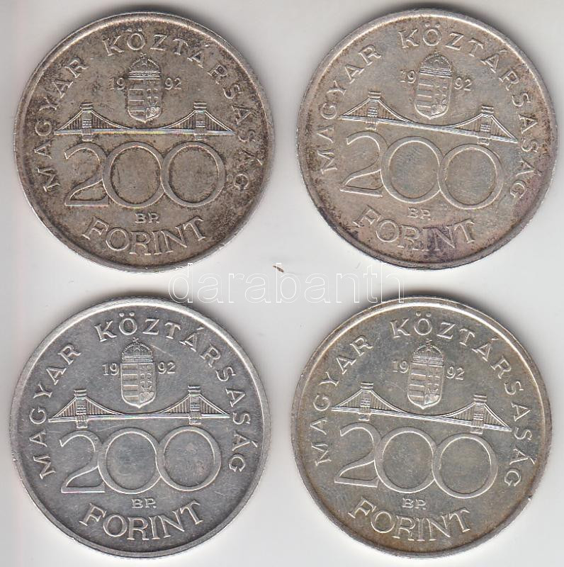 Leírás: 1992. 200Ft Ag "MNB" (4x) T:vegyes