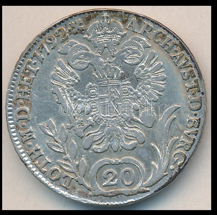 Leírás: Ausztria / magyar verdejel 1792B 20Kr Ag "II. Lipót" T:3 Huszár: 1913., Unger III.: 1346a