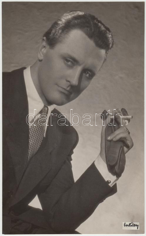 Leírás: 1940 Perényi László (1910-1993) színművész portréja, hátoldalán aláírásával, Inkey Tibor műterméből, 24x15cm