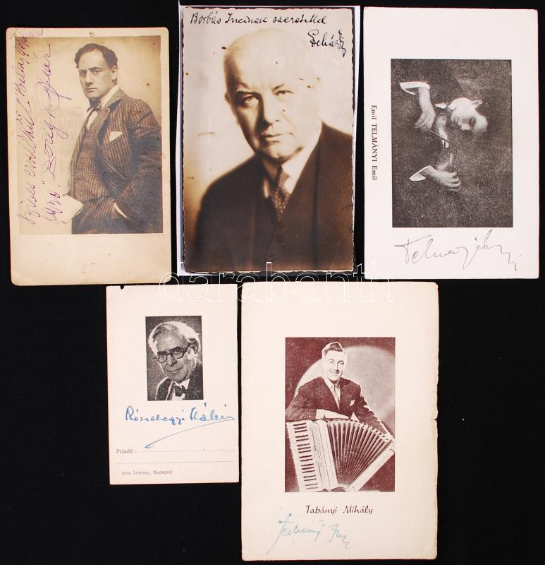 Leírás: 5db dedikált kép (fotó, nyomtatvány) zenészekről és zeneszerzőkről: Rózsahegyi Kálmán, Beregi Oszkár, Lehár Ferenc, Telmányi Emil, Tabányi Mihály