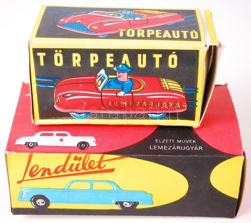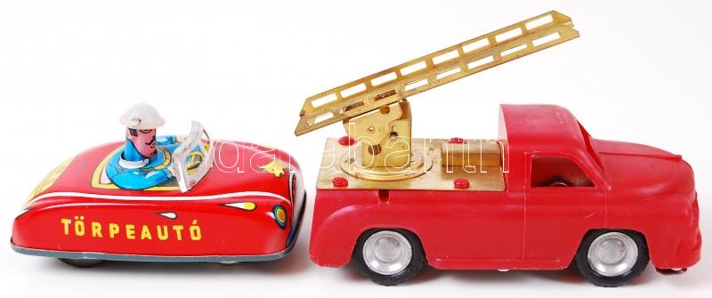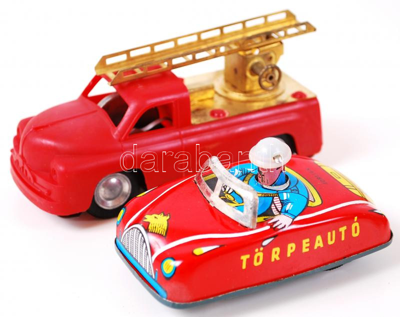 Leírás: 2db Lemezárugyár játékautó (törpeautó, tűzoltóautó)