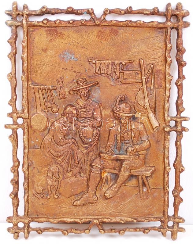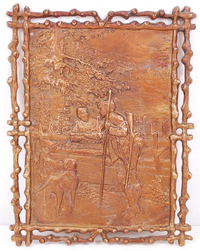 Leírás: Három darab bronz vadász falikép, egyik sérült, 23×18 cm