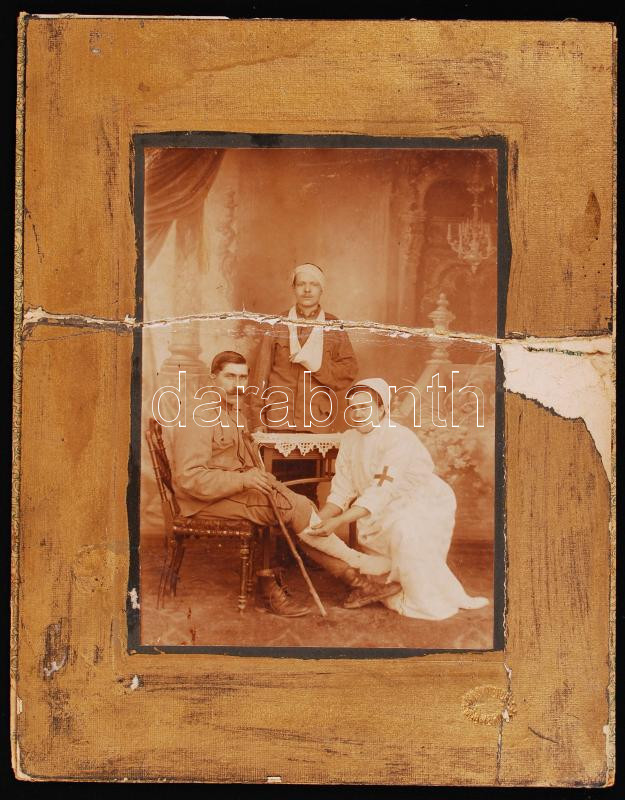 Injured soldiers, on the back four family photos (damaged), 27x21cm