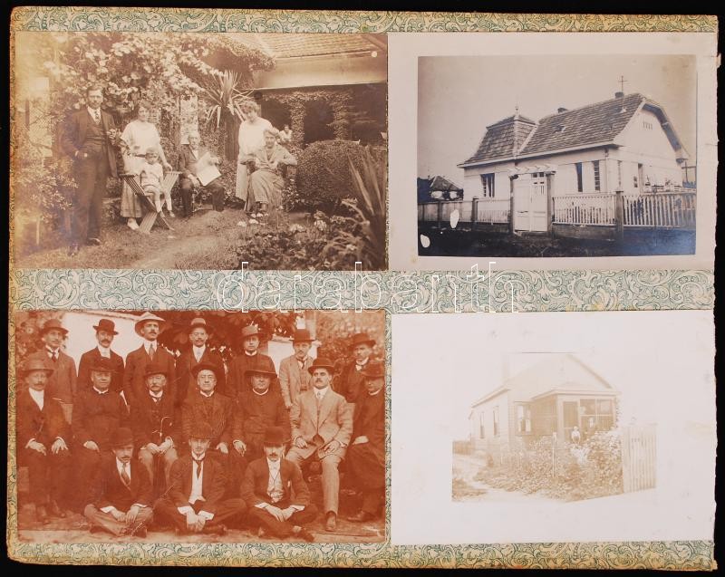 1914-1918 Sebesült katonák nővérkével, keményhátú fotó, hátoldalán 4db családi kép (sérült) /