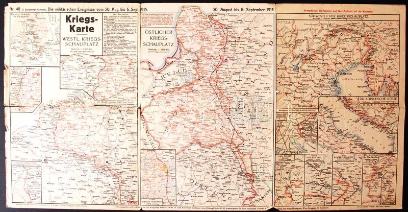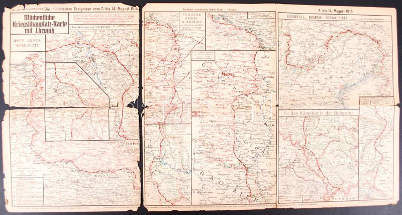 1915-1916 Kriegskarte. 3d térkép az I. világháború különböző hadmozdulatairól német nyelvű magyarázatokkal /