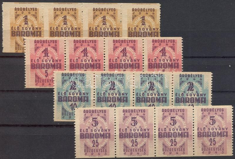 1945 4 klf Baromfi-árubélyeg négyes csíkokban https://www.darabanth.com/hu/186-Gyorsarveres/186.0/Festmeny-mutargy-papirregiseg-egyeb/Okmanybelyegek~680061/1945-4-klf-Baromfi-arubelyeg-negyes-csikokban~II680994