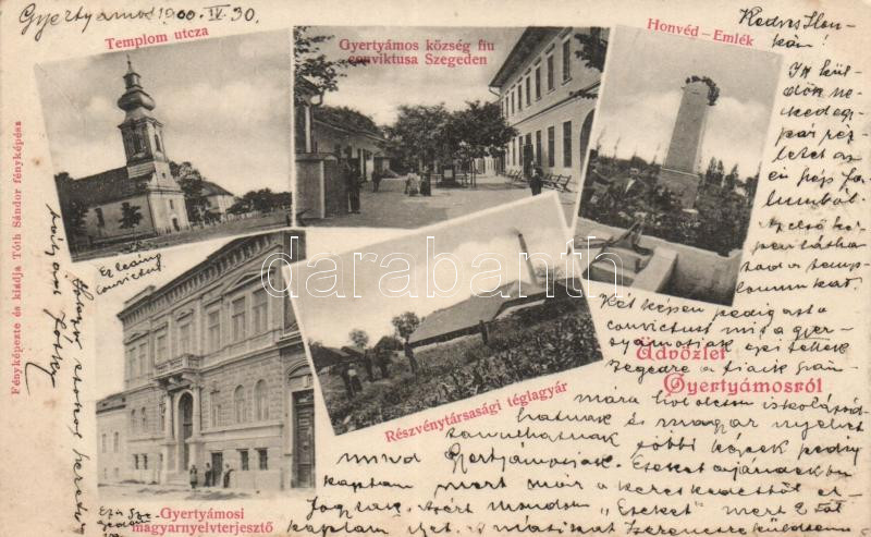 Leírás: Gyertyámos schools, brick yard, military monument, church